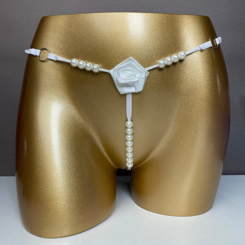 Embroidered Rose Thong Panties
