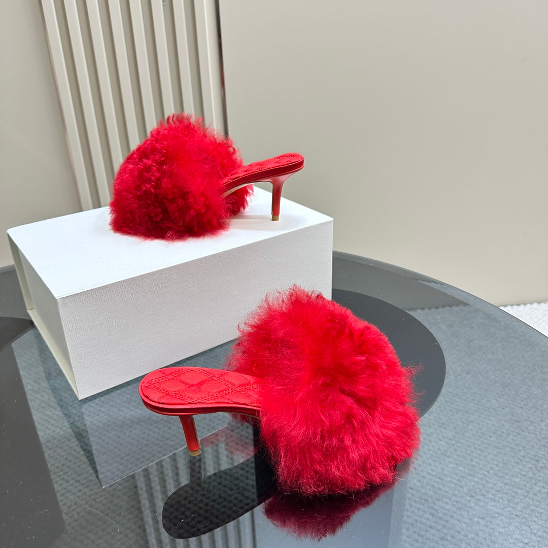 • C New long plush sheepskin mules top quality 1:1 VIP