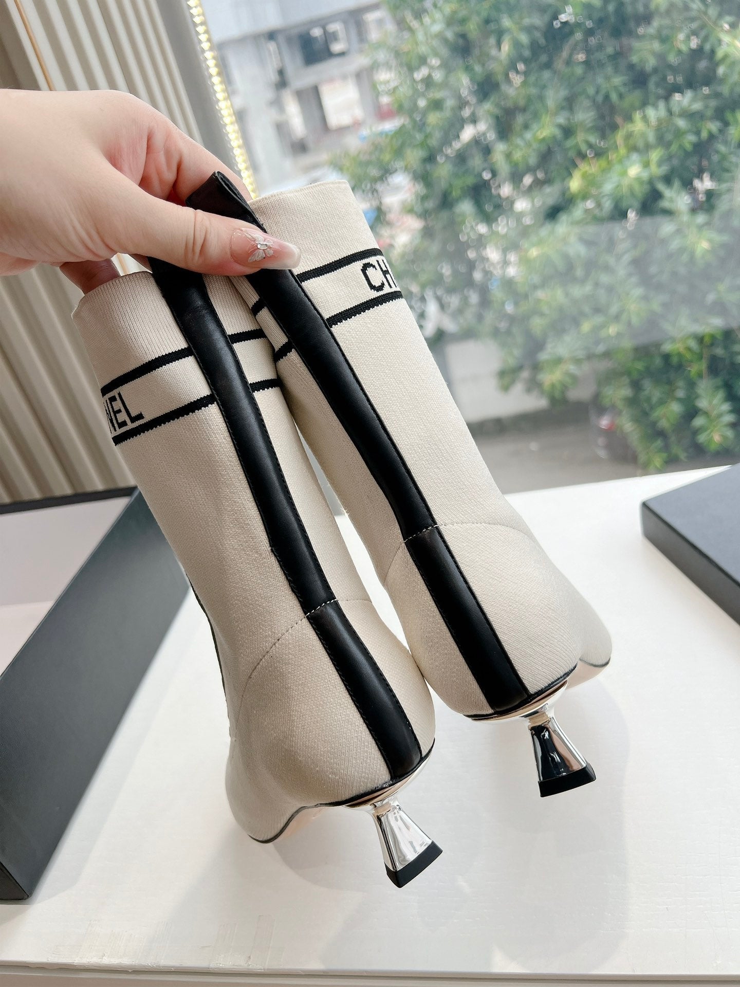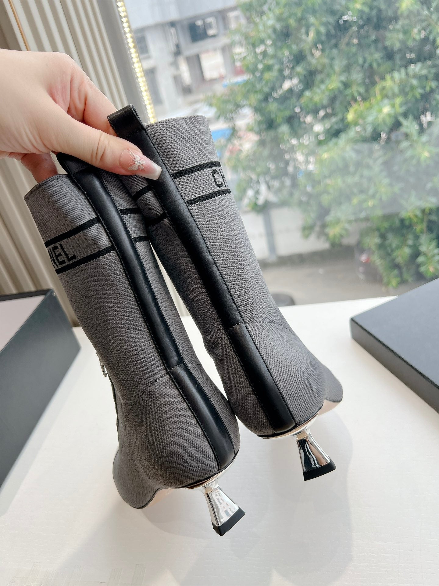 Chan*** 2025 new high quality VIP1:1 autumn and winter British style Chanel elastic knitted short boots