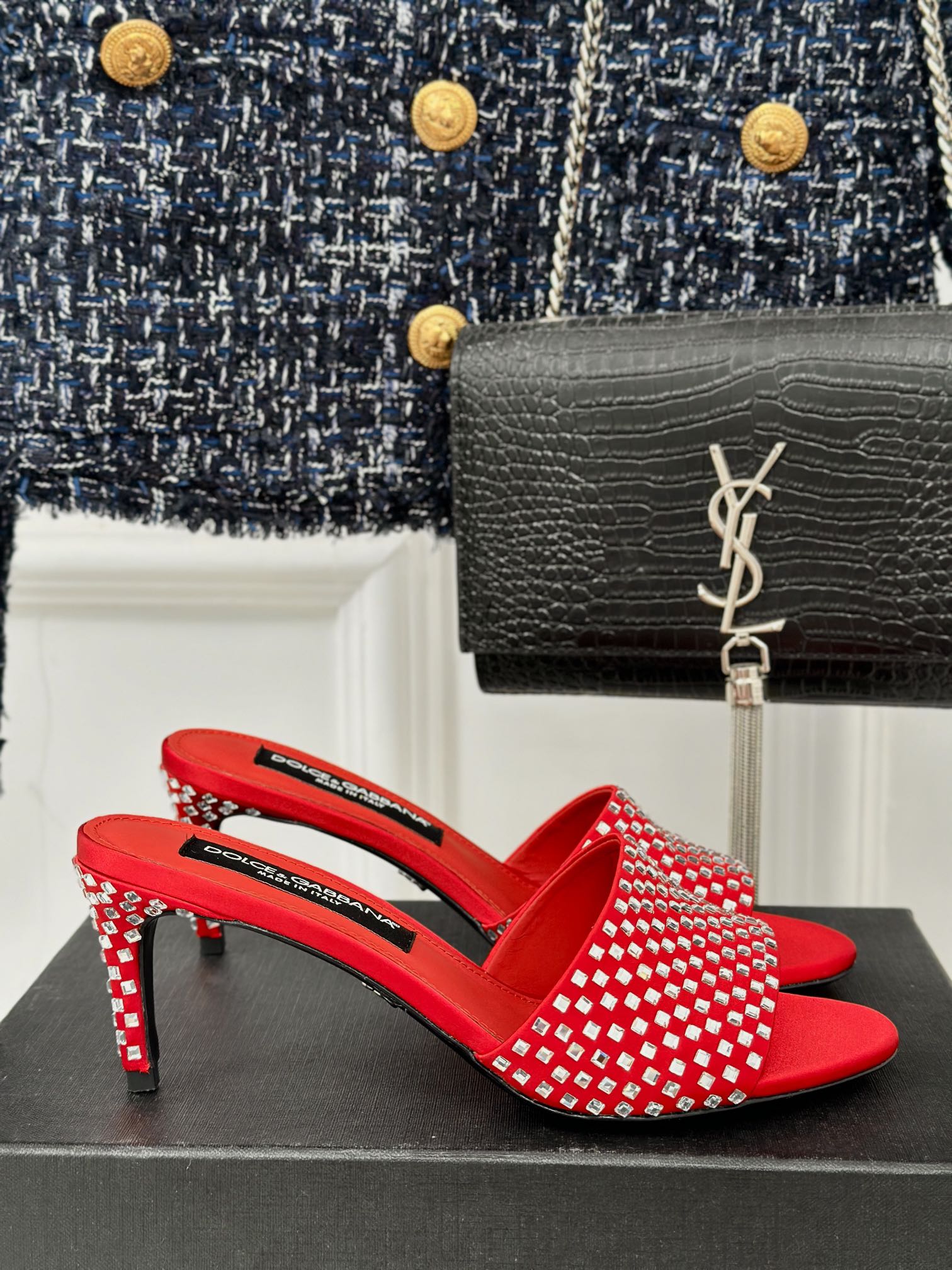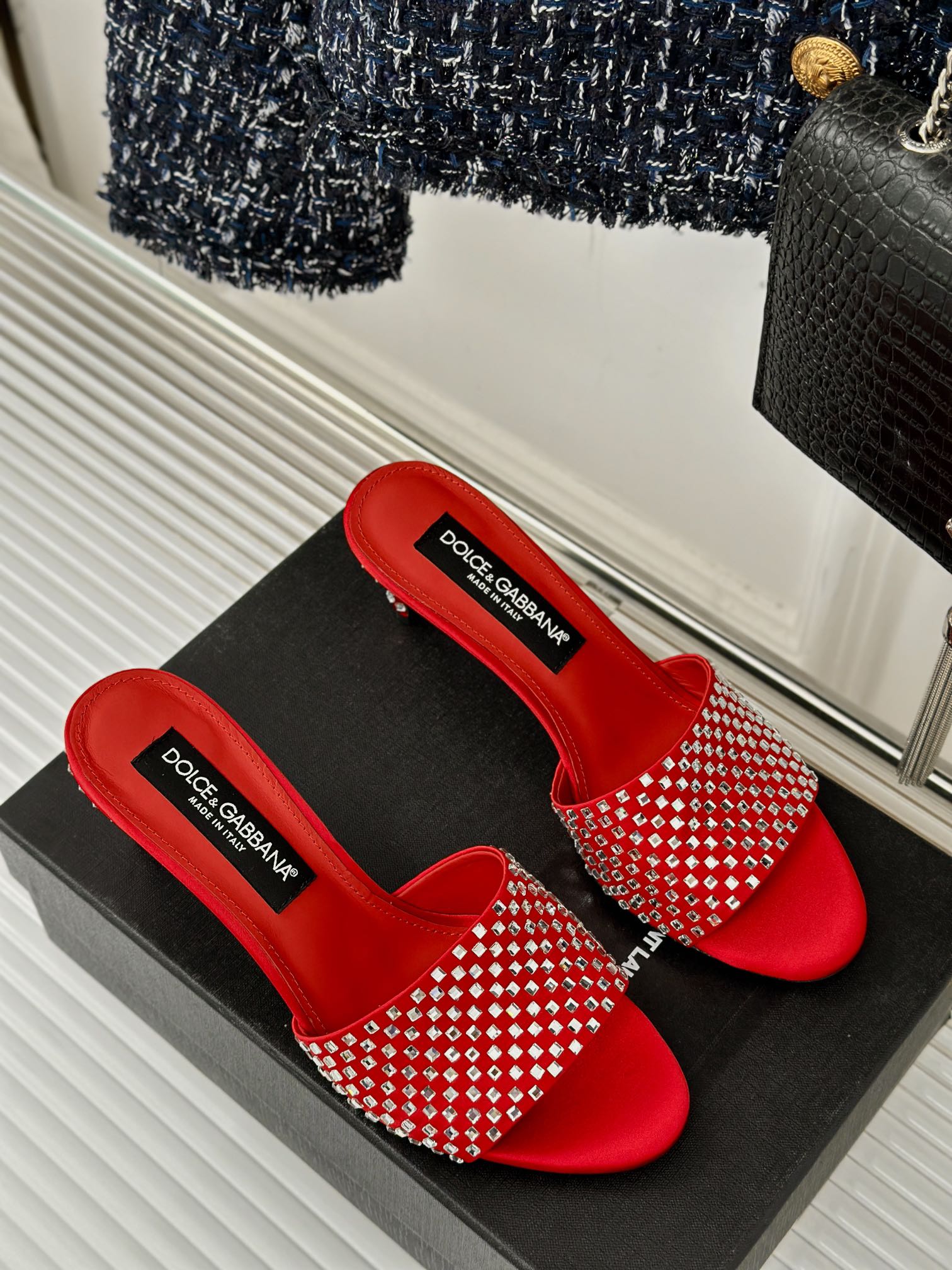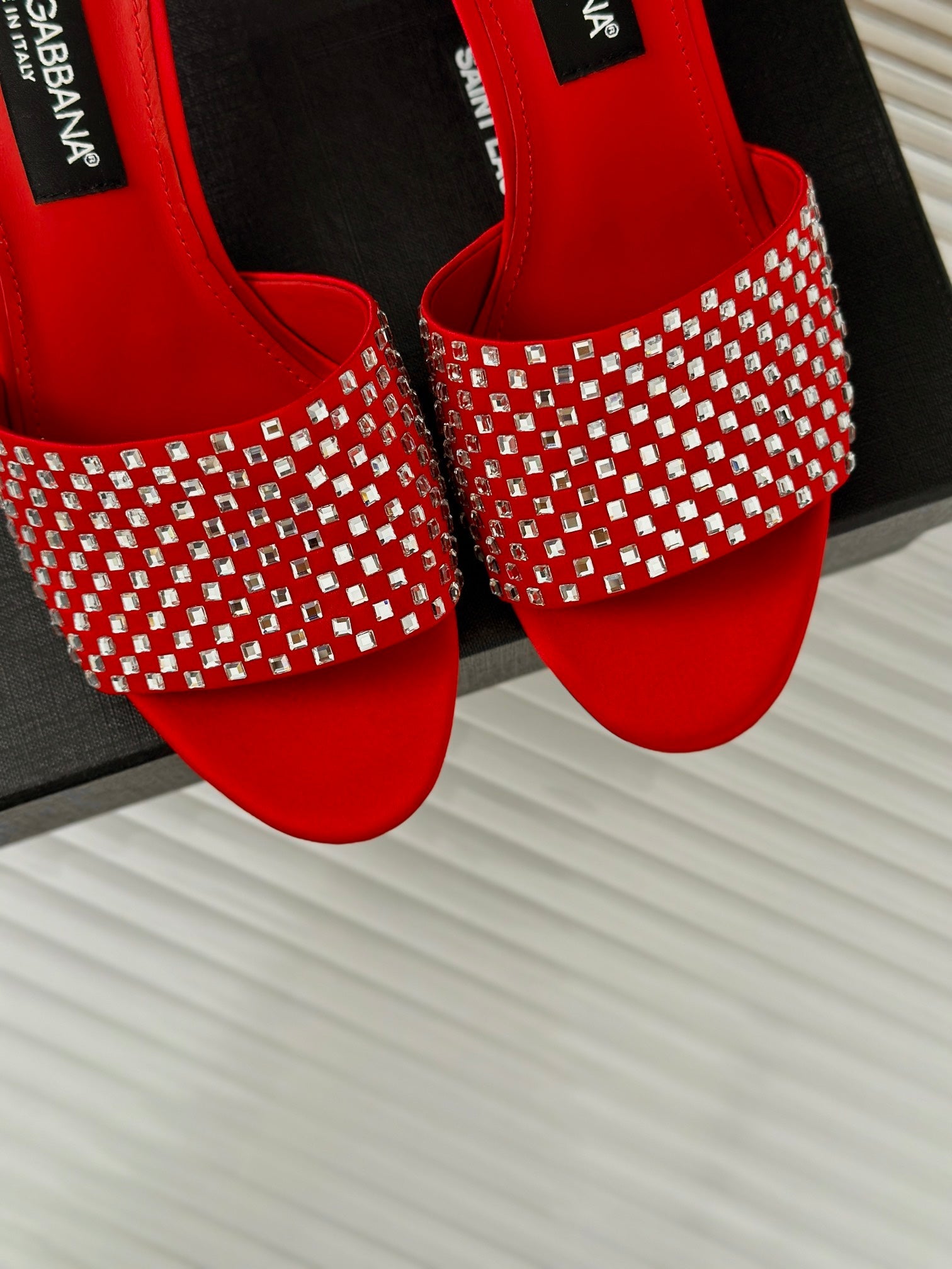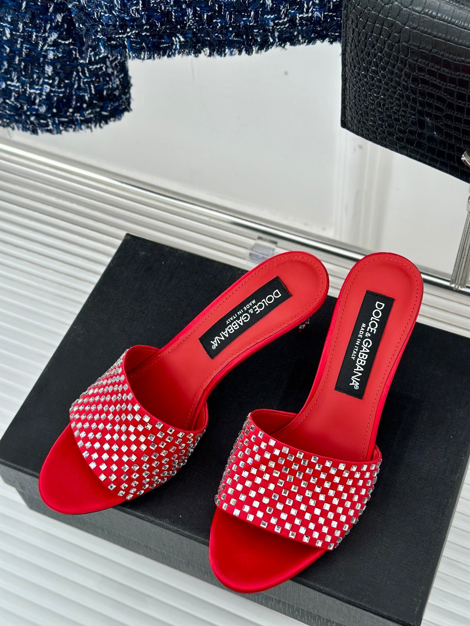 • D*LCE&GABBANA24S Spring and Summer New Rhinestone High Heel Slippers VIP 1:1