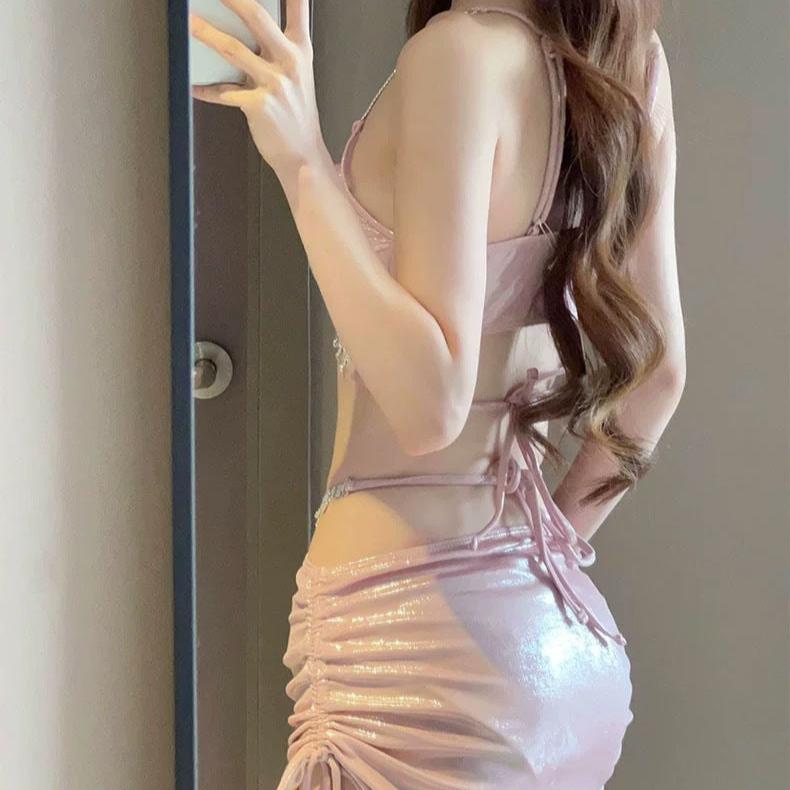 Elevate your style with the Diamond sling straps two-piece set. The diamond pattern adds a touch of boldness to your look, while the sling straps provide comfortable support. Perfect for those who are always ready to take risks and make a statement in their fashion choices.