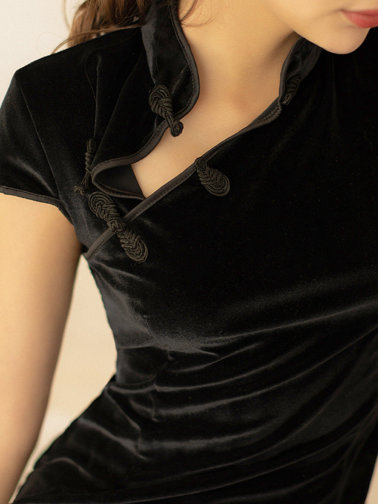 High-end gold velvet nightgown