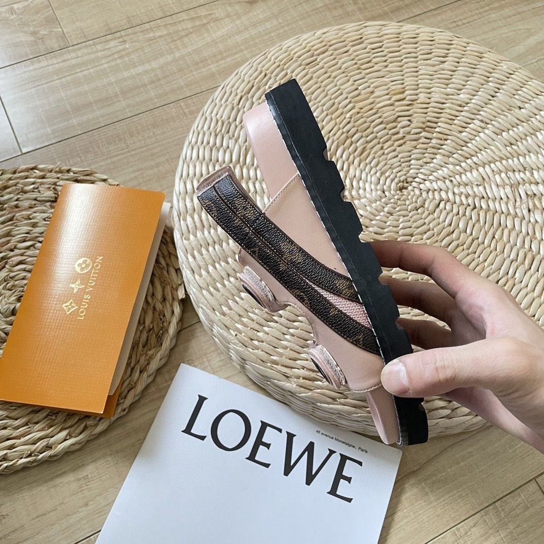 New denim sandals leather colour blocking