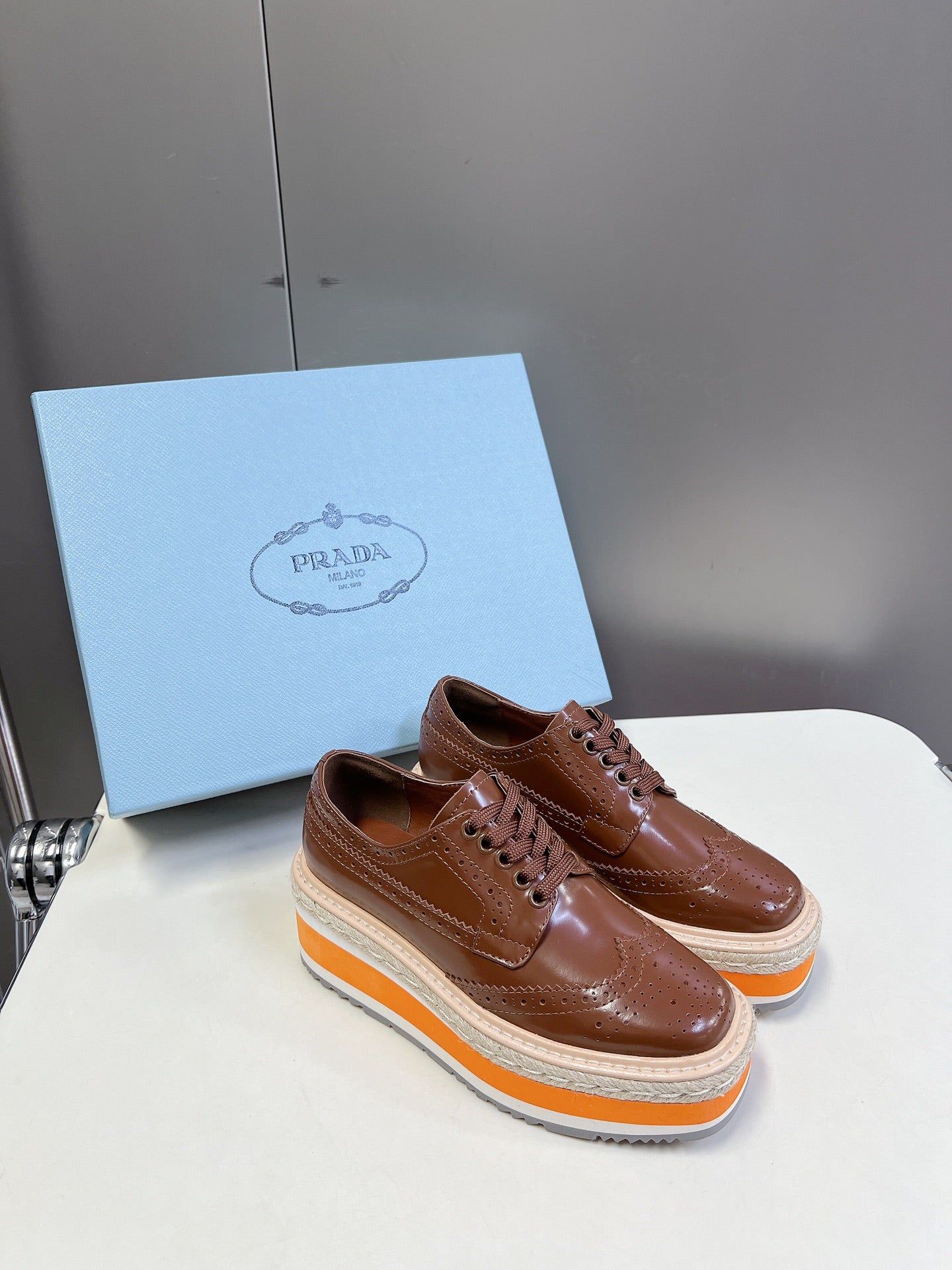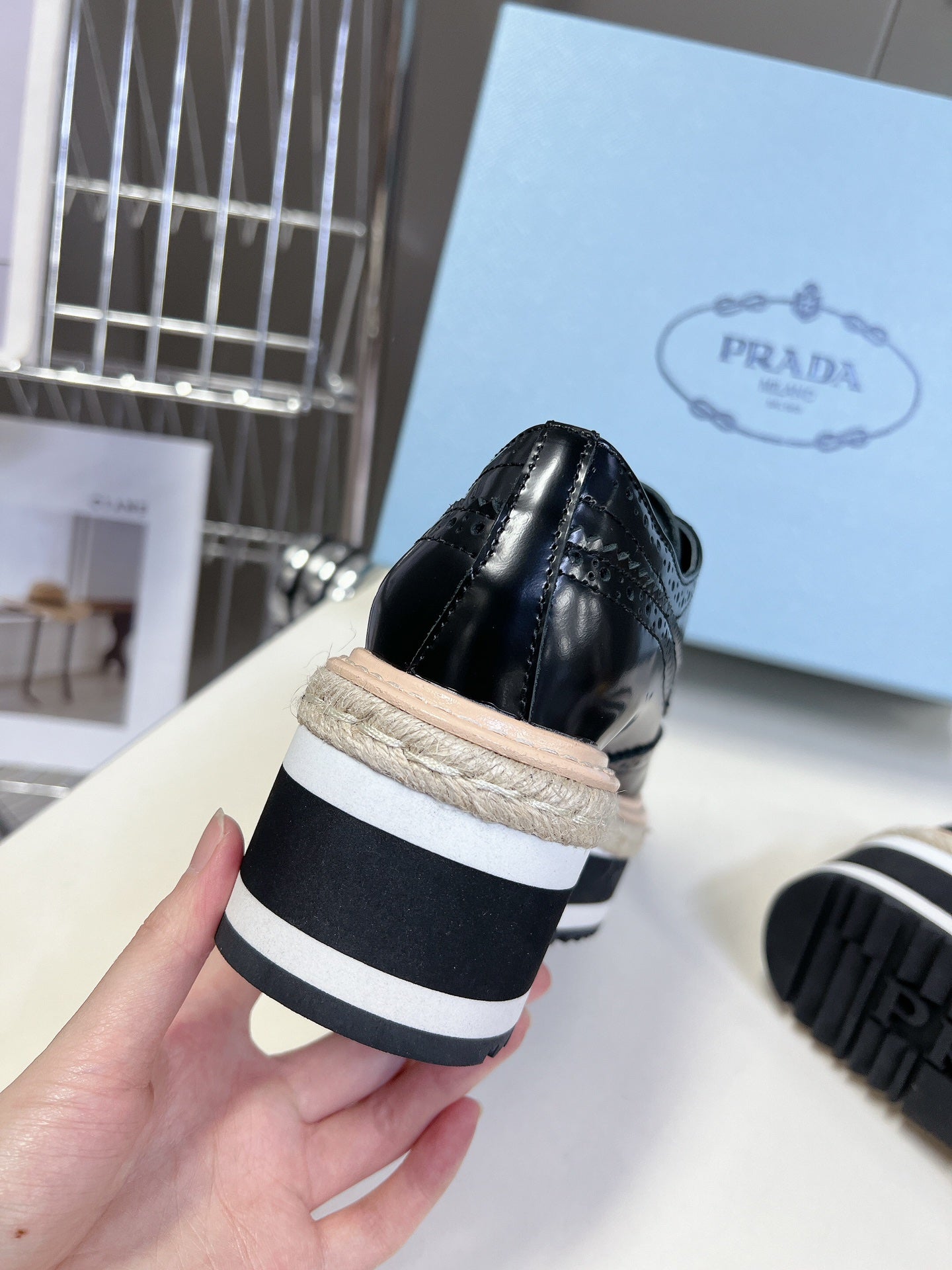 • PRA* 24SS brogue platform thick-soled hemp rope leather shoes 1:1 VIP 11