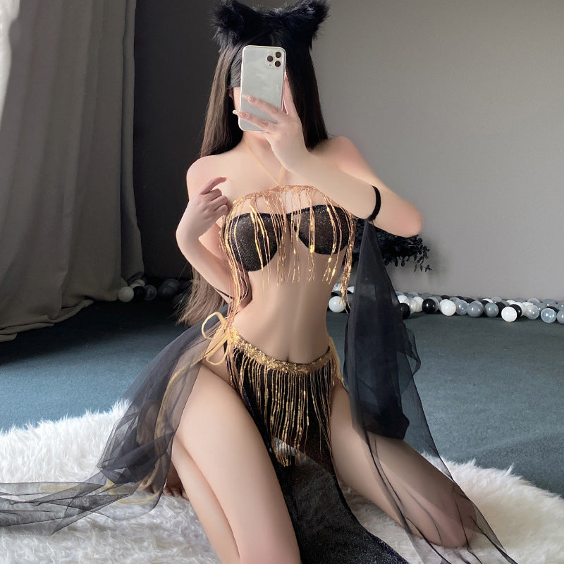 Unleash your adventurous spirit with our tassel sequined skirt! Featuring a daring lace-up slit, this skirt will make you stand out at any event. The tassel and sequin details add a touch of luxury and ensure you'll be the center of attention. Take a chance and rock this unique skirt!