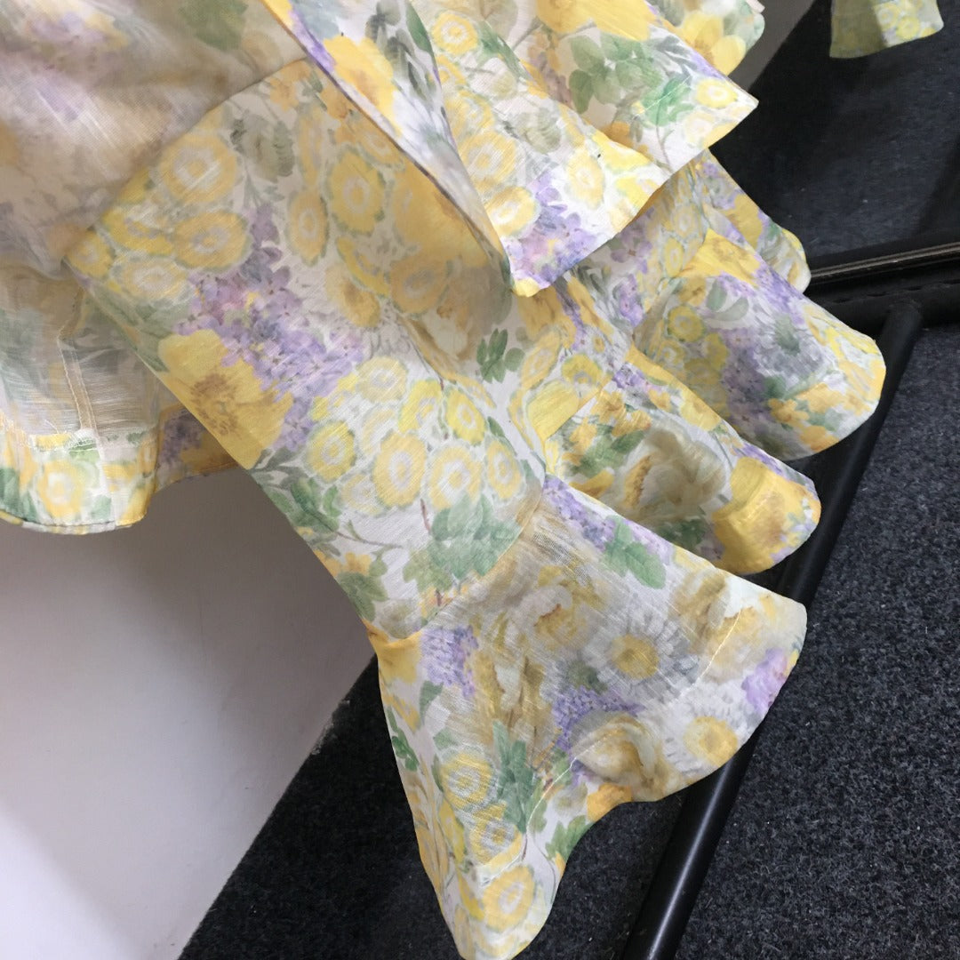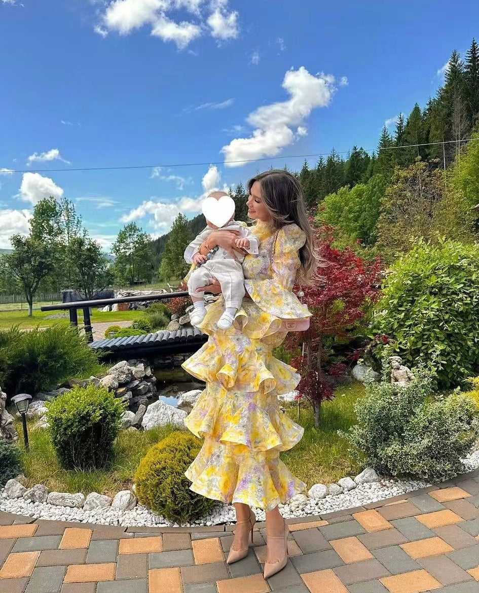 ZIM* Floral Print Tie-Waist Flared Long Sleeve Cake Dress