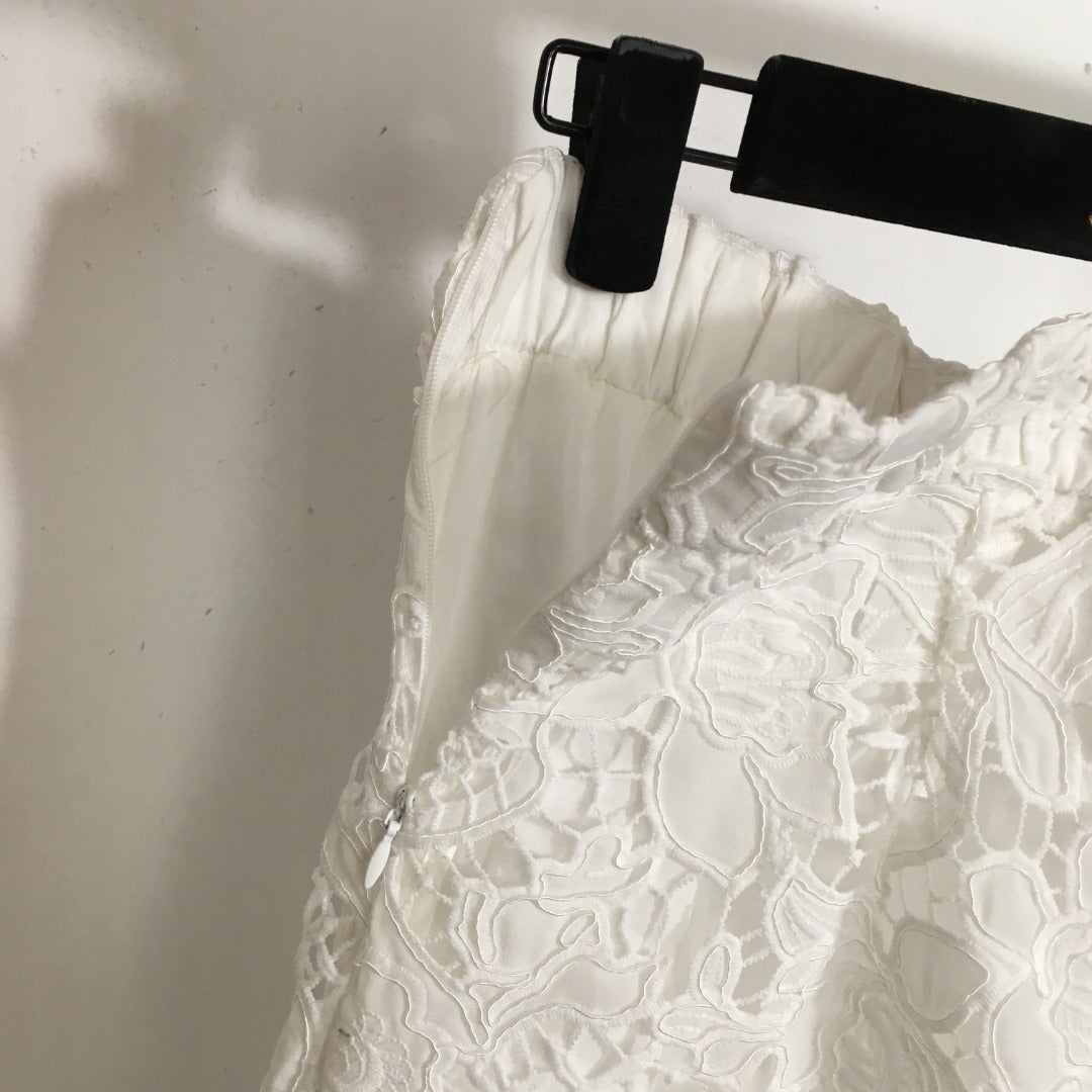 ZIM****-New style suit, lace hollow slim short-sleeved top + elegant lace skirt, with suspender lining