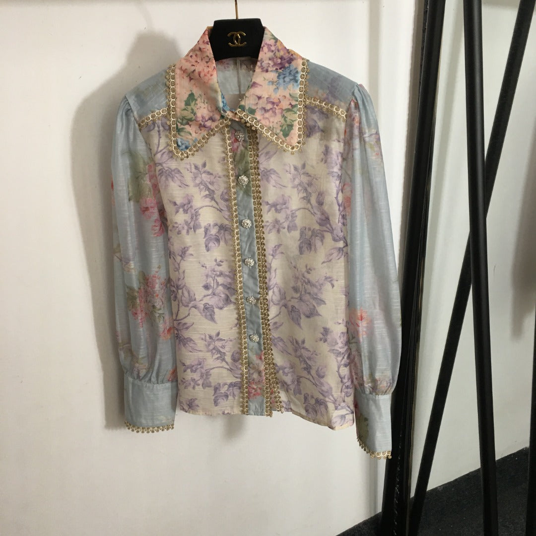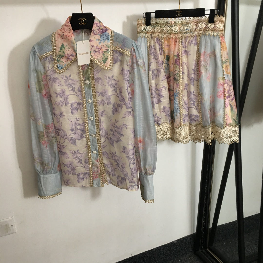 ZIM****-New suit, diamond button lace lapel long-sleeved shirt + lace short skirt