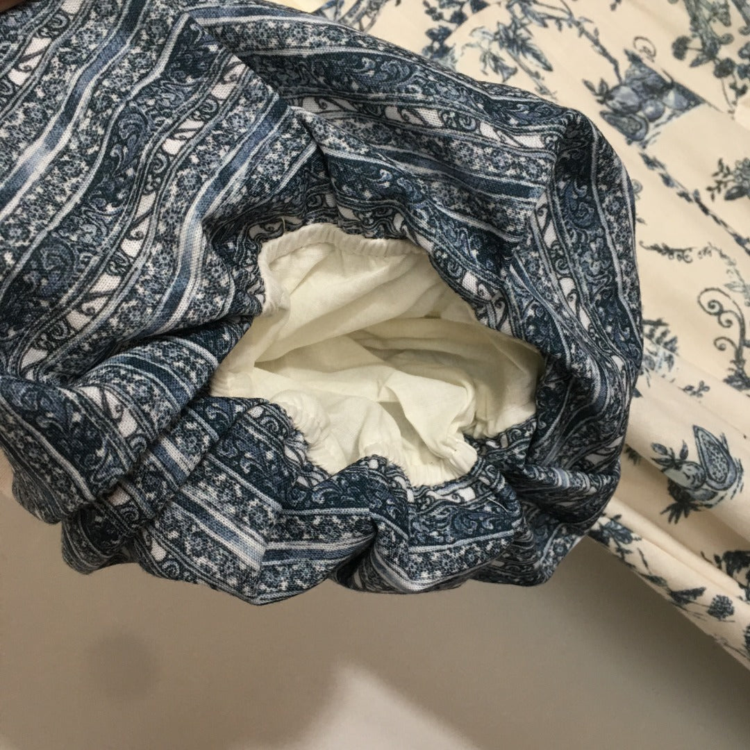 ZIM* Printed U-neck puff short-sleeved dress
