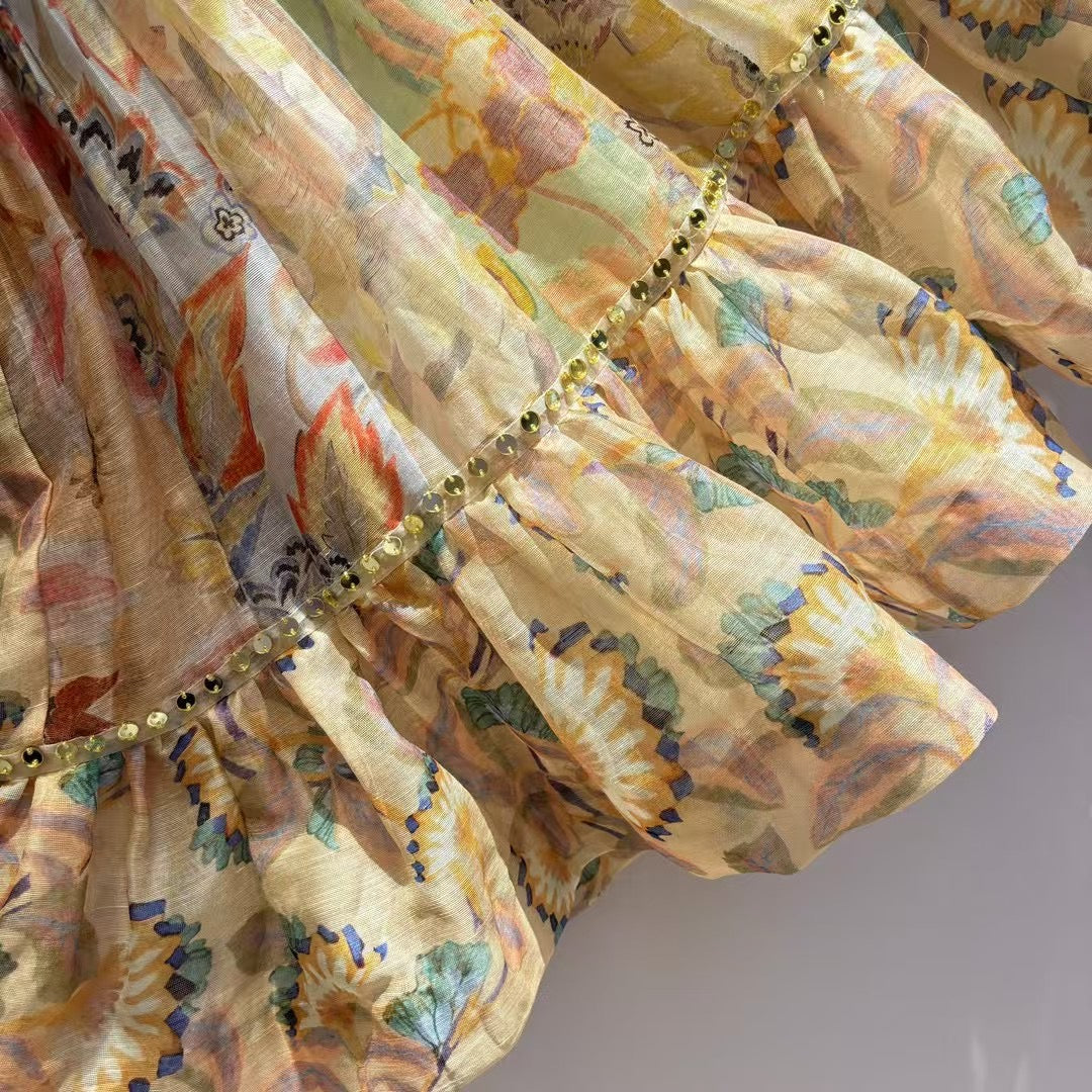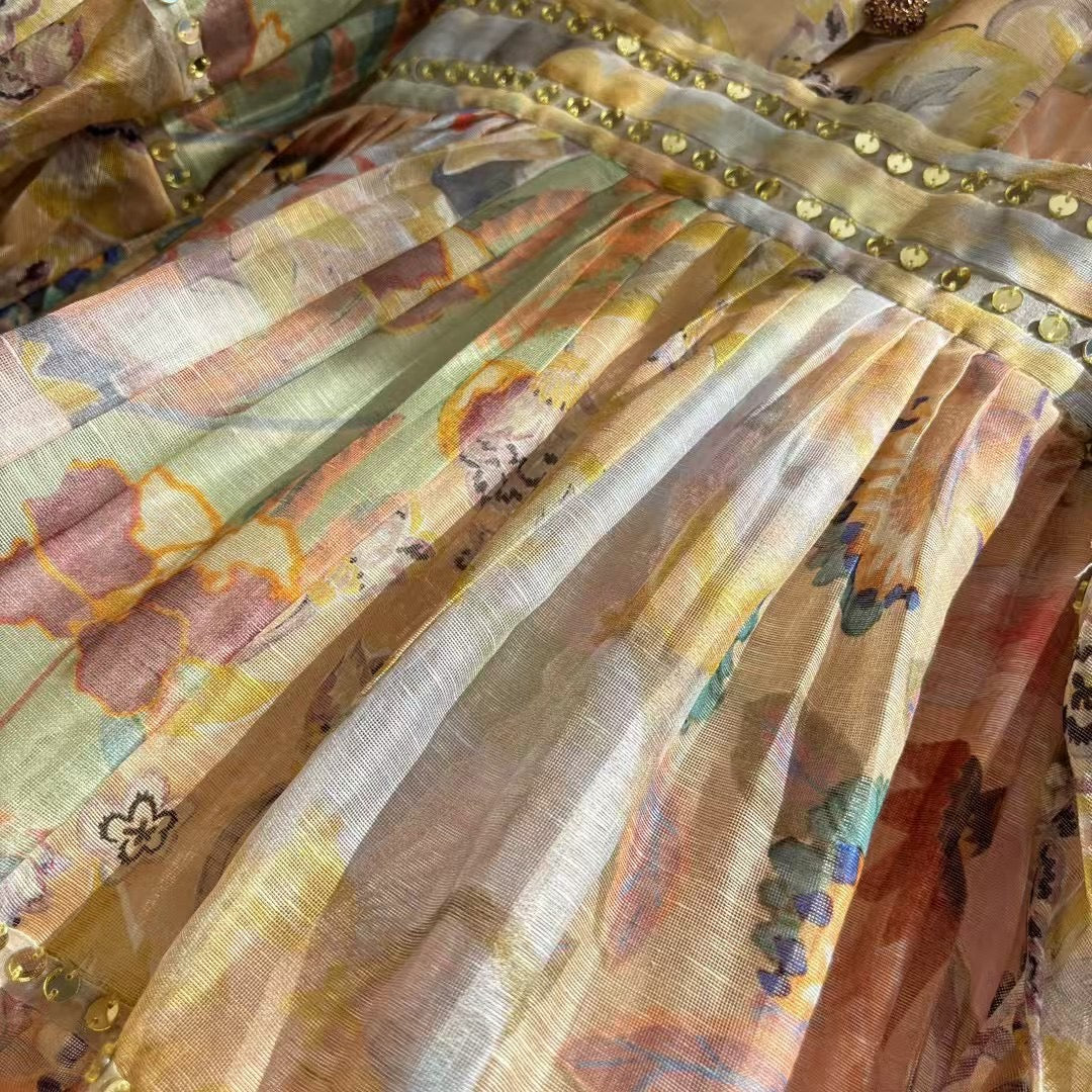 • ZIMMERM* 25SS Silk and Linen Colorblock Dress 1:1
