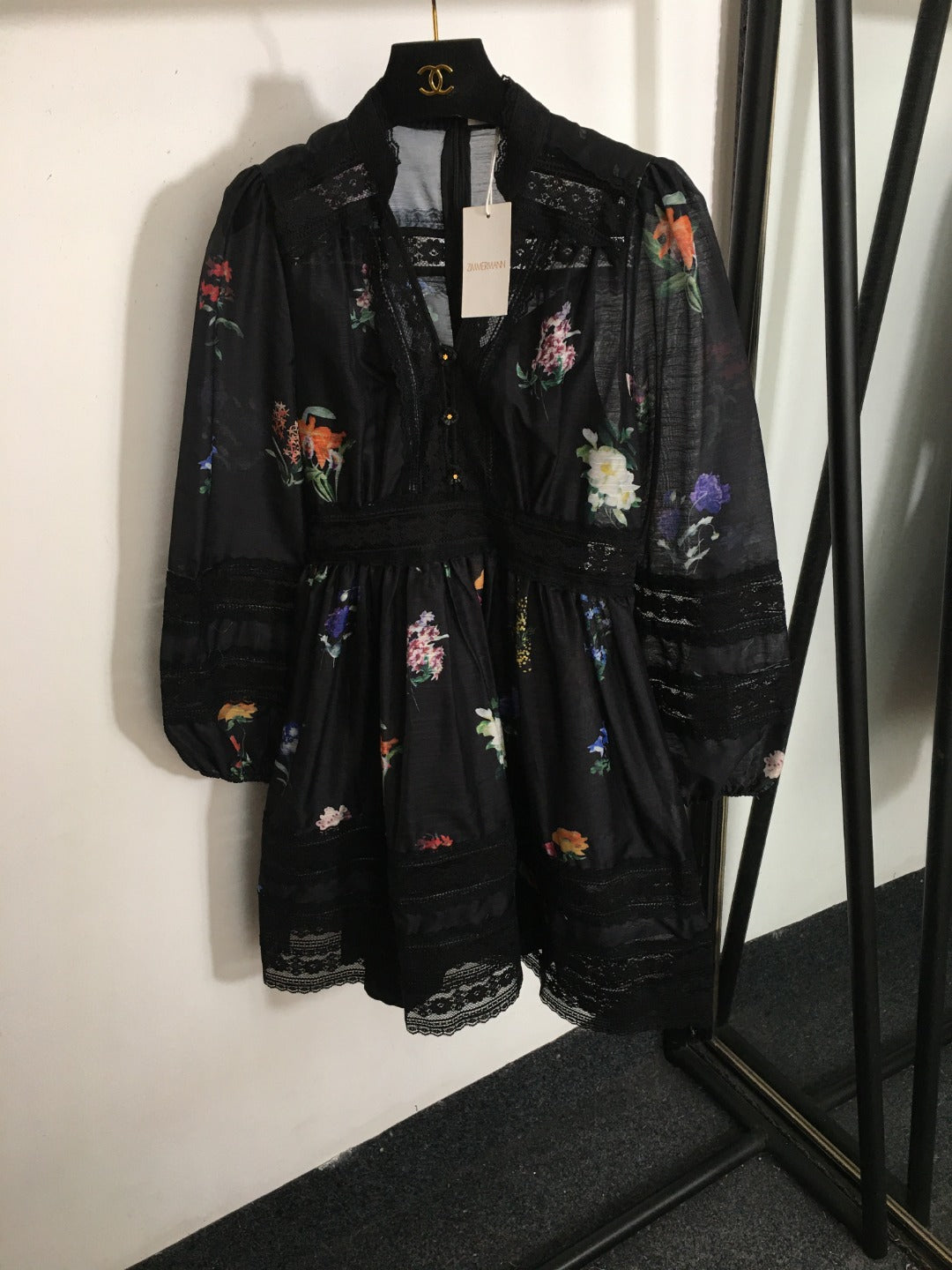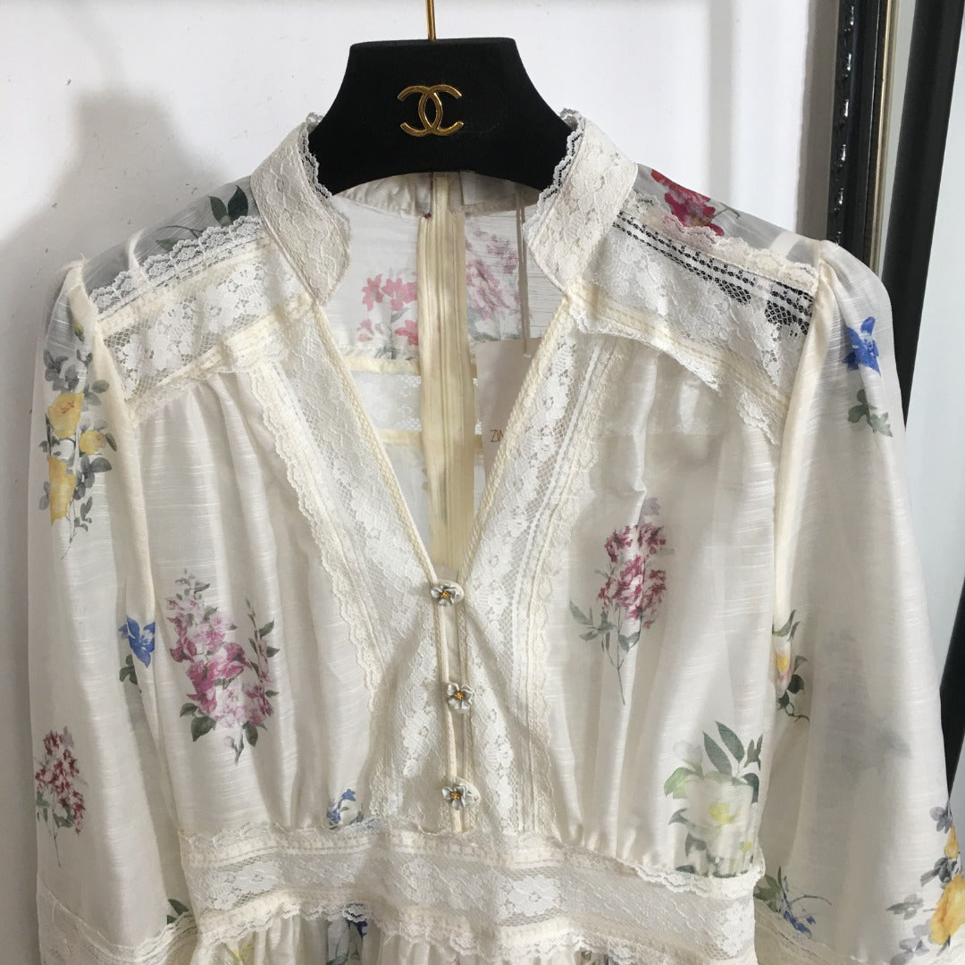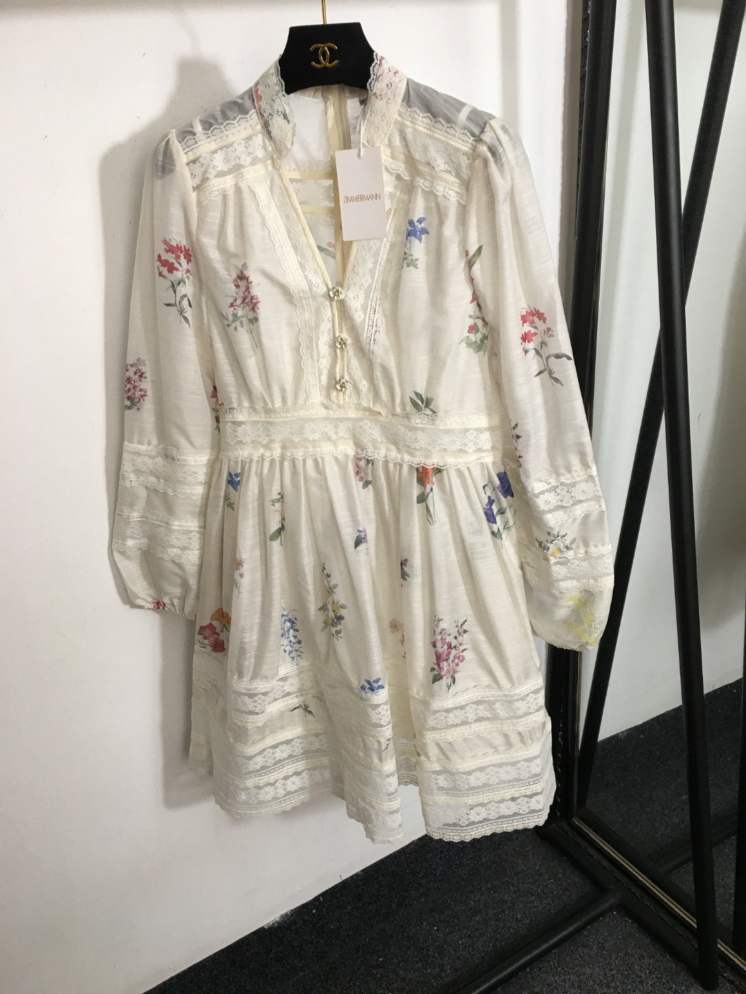 ZIMMERM*Elegant and elegant printed lace waist dress