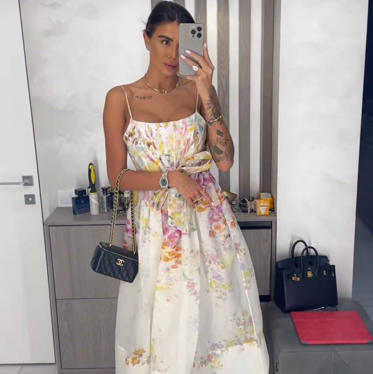 ZIMMERM*Pastoral style flower tie waist suspender dress