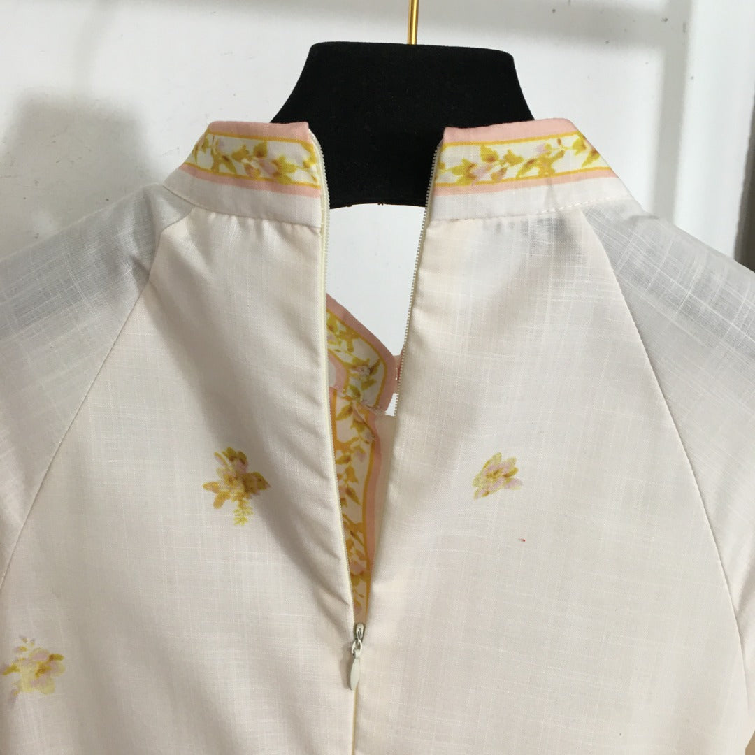 ZIMMERM* Flower Print V-Neck Waist Long Dress