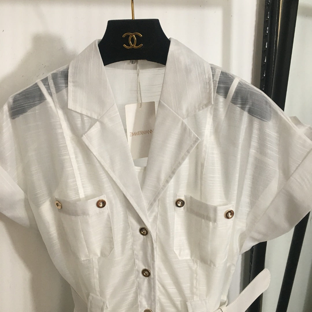 • Zimmerma**White Colorful Flower Printed Hem Waist Short Sleeve Dress